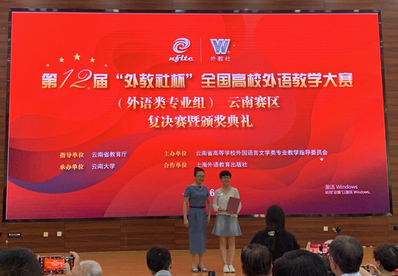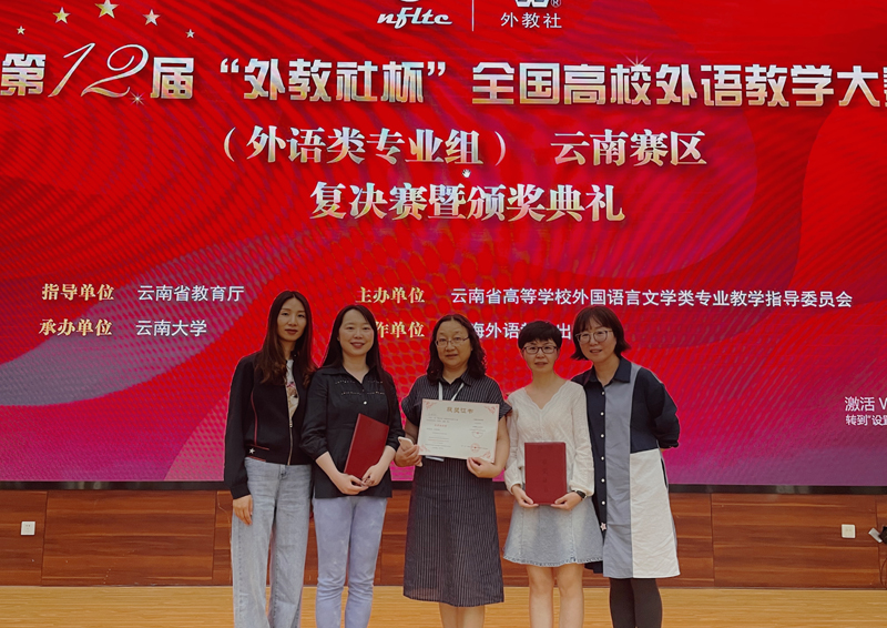 6月5-6日,外国语学院教师在第十二届“外教社杯”全国高校外语教学(英语专业组)大赛云南赛区复赛中表现出色,赵瑾老师荣获英语专业组特等奖,将代表云南省参加全国总决赛;周蕾老师荣获商务英语组三等奖;yl23411永利集团官网荣获“优秀组织奖”。