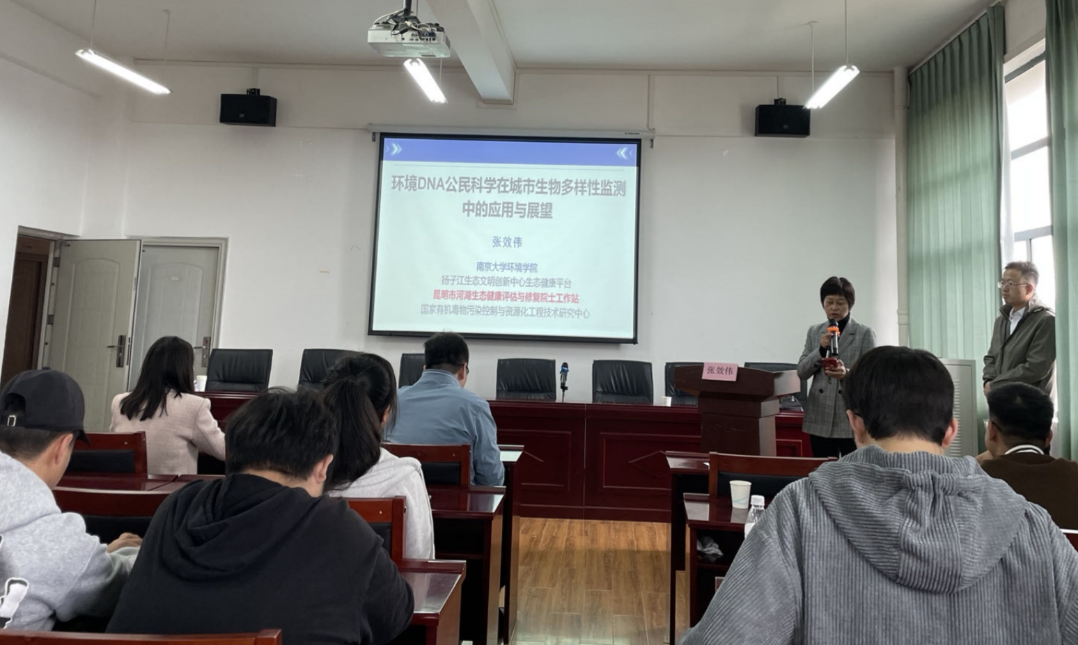 就河湖生态系统失衡、生物多样性丧失等问题,需要新的多样性监测评估方法助力生物多样性保护。张效伟教授从城市生物多样性对人类健康的重要意义开始,提出环境DNA公民科学生态保护的新模式,并详细讲解了环境DNA技术的原理、活动流程、发展历程,及环境DNA公民科学监测城市生物多样性的应用实例及其机遇与挑战,最后还和与会师生进行交流研讨,拓展其学术视野,与会师生从中受益匪浅。