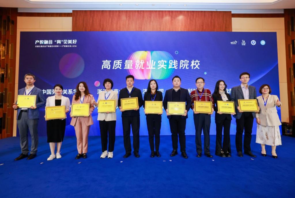 本次论坛以“产教融合·‘育’见美好”为主题,聚焦泛酒店业的教育与产业深度融合,探索校企合作新模式,旨在推动产业与教育的共赢发展。论坛汇聚了教育界、产业界的众多领军人物,吸引全国多所院校、近200位院校嘉宾齐聚一堂,呈现出一场“政、产、学、研、用”各领域深度融合与创新发展的行业盛会。永利官网旅游学院在产教融合方面得到同行教育界及旅游行业的认可,在产业学院的发展建设、就业等方面取得良好成绩与口碑,荣获该奖项。