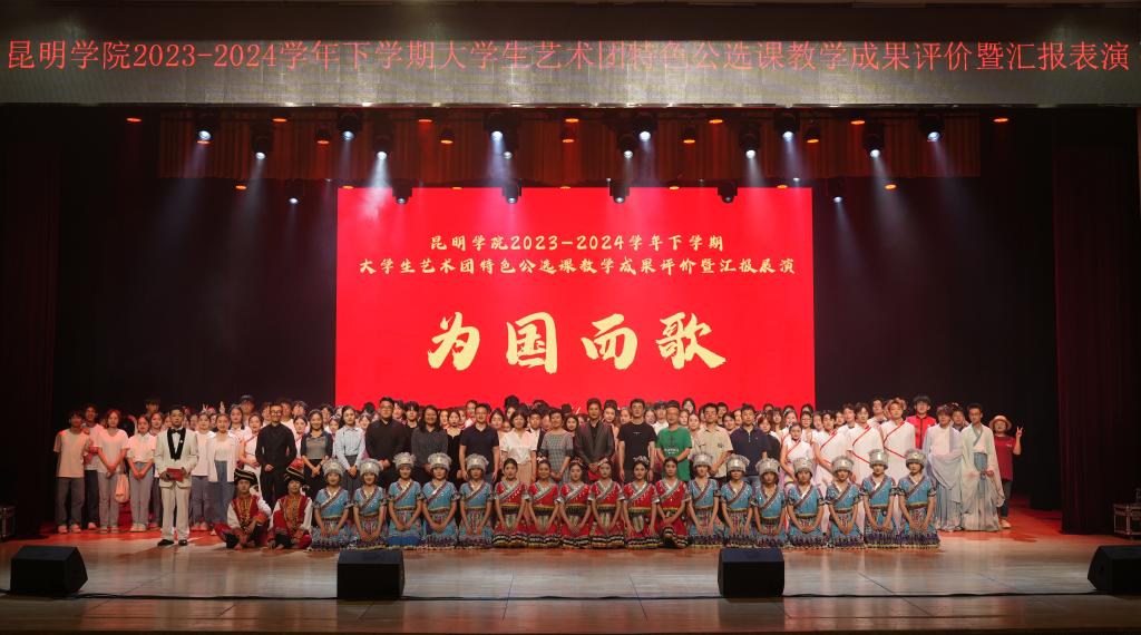 6月20日晚,yl23411永利集团官网2023—2024学年下学期聂耳大学生艺术团特色公选课教学成果评价暨汇报展演在学生会堂圆满落下帷幕。学校党委副书记李莉,校团委、教学质量监控与评价中心、教务处等部门负责人出席活动。云南艺术学院硕士生导师、附属艺术学校校长、云南省舞蹈家协会副主席农布七林,音乐舞蹈学院教授、硕士生导师鲁林,校团委副书记荣杨担任课程评价评委。