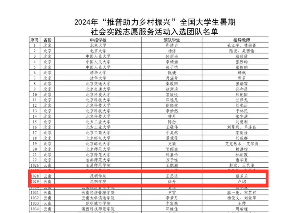 为深入贯彻落实党的二十大关于“加大国家通用语言文字推广力度”的决策部署,贯彻落实习近平总书记关于教育的重要论述和关于语言文字的重要指示批示精神,服务铸牢中华民族共同体意识,助力教育强国、文化强国建设,引导学生为中国式现代化贡献青春力量,教育部语言文字应用管理司、共青团中央青年发展部组织开展2024年“推普助力乡村振兴”全国大学生暑期社会实践志愿服务活动。在1452所高校、6998支团队、7万余名师生参与的项目初选中,永利官网“推普赋能,助力乡村振兴队”和“yl23411永利集团官网赴文山八宝镇推普助力乡村振兴服务队”2支团队成功入选。