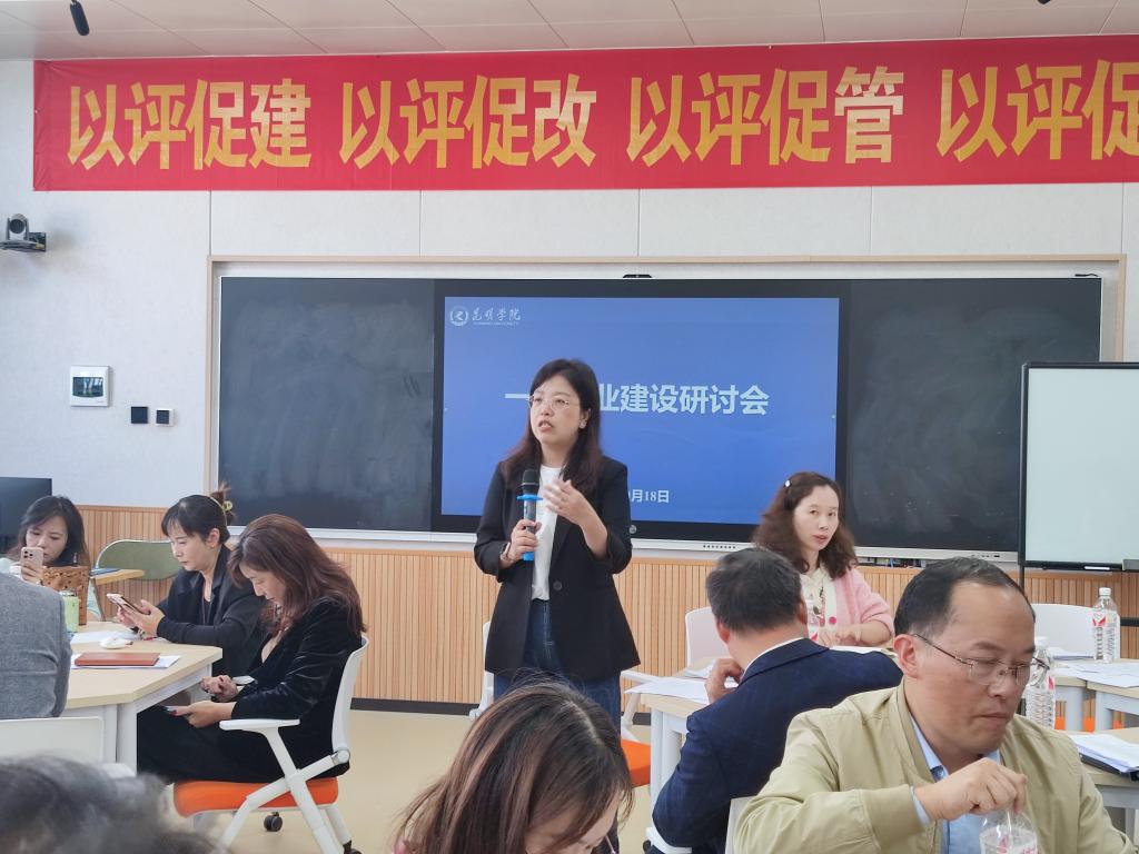 会议首先由一流专业建设点代表发言。各学院院长及相关负责人围绕课程建设、师资队伍与教学团队建设、教材建设、四、六级通过率及考研升学率等关键指标,对当前专业建设的现状进行了深入分析,并提出了进一步提升专业建设水平的具体改进措施。