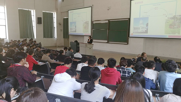 缪教授就我国能源系统的现状,能源系统面临的挑战,多能源如何互补,我国新能源发展状况,新能源亟待解决的技术瓶颈等内容展开了阐述。她用大量详实的研究数据、真实的现场照片、项目研究的最新成果和思路为我院师生展现了丰富的、前沿的内容。在互动环节中,针对师生提出的问题,缪教授进行了详细的解答。