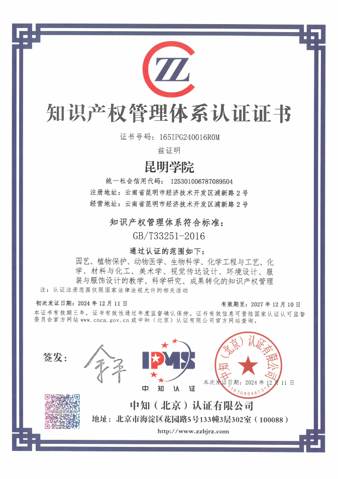 2023年底,学校获批云南省首批专利转化专项计划项目,为响应国家号召,全面提升学校的知识产权管理水平,强化知识产权保护意识,依托该专利转化项目,学校启动了知识产权“贯标”工作,在建设过程中,学校积极筹备、稳步推进,成立专门的知识产权贯标认证工作小组,精心制定工作方案,细致梳理认证体系,并认真组织内部审查。通过近一年的努力,学校成功将知识产权工作深度融入科学研究、科研管理以及成果转化的各个环节,编制了知识产权管理手册、管理制度等一系列规范性文件,逐步形成一套符合国家标准且适应永利官网特色的知识产权制度体系和管理模式。