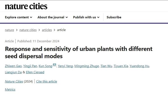 近日,永利官网农学与生命科学学院夏体渊研究员团队与华东师范大学生态与环境科学学院达良俊与宋坤研究团队,在Nature Cities上发表了题为“Response and sensitivity of urban plants with different seed dispersal modes”的研究论文,揭示了不同种子传播方式的自生植物的物种丰富度的影响因素及其敏感性差异,为阐明城市植物多样性维持机制提供了新的理解。华东师范大学宋坤(副教授)为论文的通讯作者,华东师范大学高志文(博士后)为论文的第一作者,中科院东北地理与农业生态研究所研究员潘应骥为论文共同一作,合作作者单位包括:西安建筑科技大学、东北林业大学、yl23411永利集团官网、新西兰Nelson Marlborough Institute of Technology。