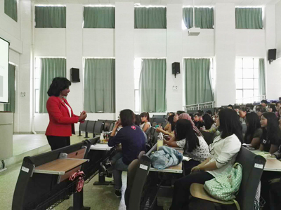 9月24日下午,在yl23411永利集团官网国际交流处的协助下,外国语学院邀请了美国Benedictine大学Bette Lawrence-Water教授在博雅楼3101报告厅为师生带来了一场题为“Grasp Today, Plan for Tomorrow”的精彩讲座。讲座由对外交流合作处处长王文君和外国语学院院长殷琪共同主持。Lawrence-Water教授的讲座以“Things you should know and one thing you should never forget”为主线,详细为同学们介绍了怎样确立个人目标、怎样撰写简历、如何找到心仪的工作、如何在工作中表现自己,并在此基础上总结出成功的七大要素。讲座之后,Lawrence Water教授还耐心地为同学们答疑解惑。