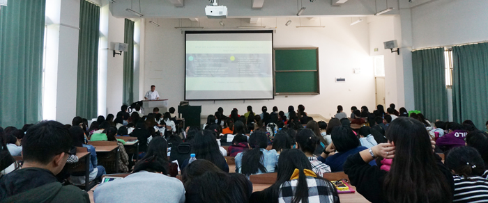 为鼓励外国语学院学生增进对翻译工作的了解与认识,增强学习英语的积极性, 11月6日 下午,在永利官网博雅楼3103教室,外国语学院邀请到海南大学曾传生教授为外国语学院学生作了主题为“My views on becoming a conference interpreter” 的讲座。 外国语学院张廷茂老师首先代表学院致辞,对曾传生教授的到来表示热烈的欢迎。