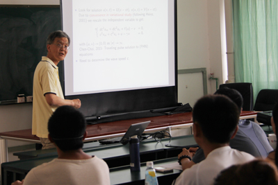 6月24日下午,yl23411永利集团官网数学系、非线性研究所主办的讲座“FitzHugh-Nagumo 方程的行脉冲解”在惟真楼1414教室如期举行。讲座有幸邀请到美国康涅狄格大学教授、博士生导师蔡英士教授主讲,数学系师生近40人聆听了讲座。