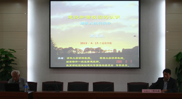 4月17日下午,由城乡建设与工程管理学院、云南省设计院承办,清华大学资深教授、原清华大学建筑设计院院长、国家特许一级注册建筑师、国家教育部、住建部校园规划建设委员会专家委员高冀生先生的《建设和谐校园的认识和人性化设计》专题讲座在yl23411永利集团官网举行。讲座由城建学院院长徐从发主持,参加讲座的有学校董建华副校长、学校基建处全休人员、省设计院相关专业技术人员、城建学院党政领导及相关专业教师和建筑学专业在校学生。