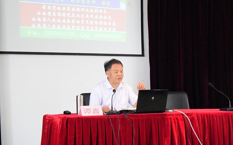 谭鑫教授从云南乡村振兴战略的构想提出、云南乡村振兴战略存在的问题、云南乡村振兴战略的发展建议等来分析论证云南乡村振兴战略。谭鑫教授提到任何重大决策要有“五定”:定方向、定思路、定目标、定任务、定要求,要有“六变”;云南乡村振兴战略存在的主要问题有乡村空心化、人口老龄化、城乡融合发展不够、农业科技意识差等问题、乡村治理体系差、公共服务差三农发展不均衡等;最后谭鑫教授指出,要用“一个最终目的、二个关键、三个治理、四个优先、五干、六点”来解决上述问题。谭鑫教授的讲座内容丰富、资料翔实、图文并茂、专业性强,为永利官网师生上了一堂既有严谨的学术性,又有利于指导大学生今后就业的实用性讲座。