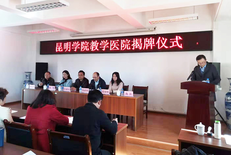 yl23411永利集团官网医学院院长余珊宣读了云南省教育厅、云南省卫生健康委《关于公布高等学校新增教学医院的通知》,宣布昆明经开人民医院正式成为yl23411永利集团官网教学医院。