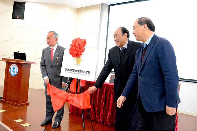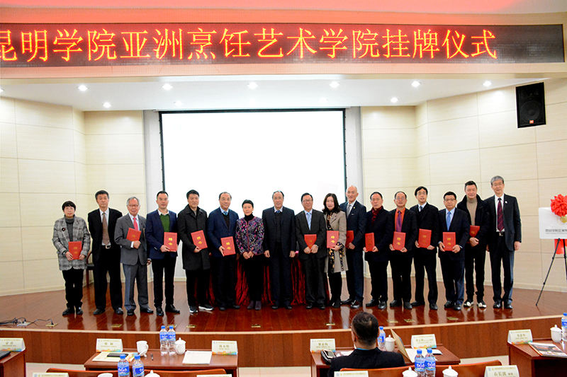 yl23411永利集团官网副校长董建华、王凡,美国内华达大学、强生威尔士大学、马来西亚UCSI大学、中国澳门科技大学、中山大学、华南理工大学、哈尔滨商业大学、四川旅游学院等国内外著名高校的专家学者及希尔顿集团、美国饭店协会教育学院,云南省餐饮烹饪行业协会与企业的领导、嘉宾,以及云南省地方烹饪与酒店管理专业院校的代表参加挂牌仪式,共同见证yl23411永利集团官网亚洲烹饪艺术学院的成立。